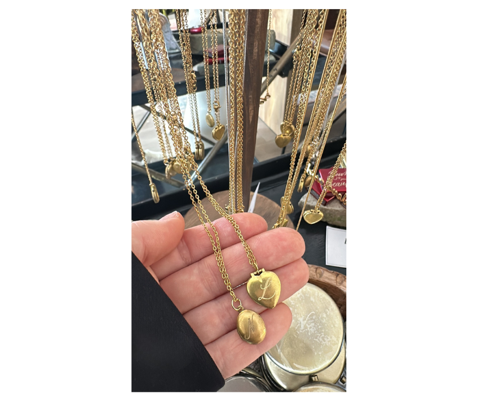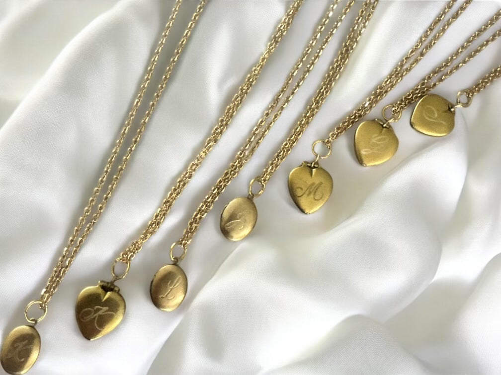 Lockets are genuine vintage from the 60's - 70's. By ordering online you will receive EITHER an oval locket OR a heart shaped locket with your chosen initial.
