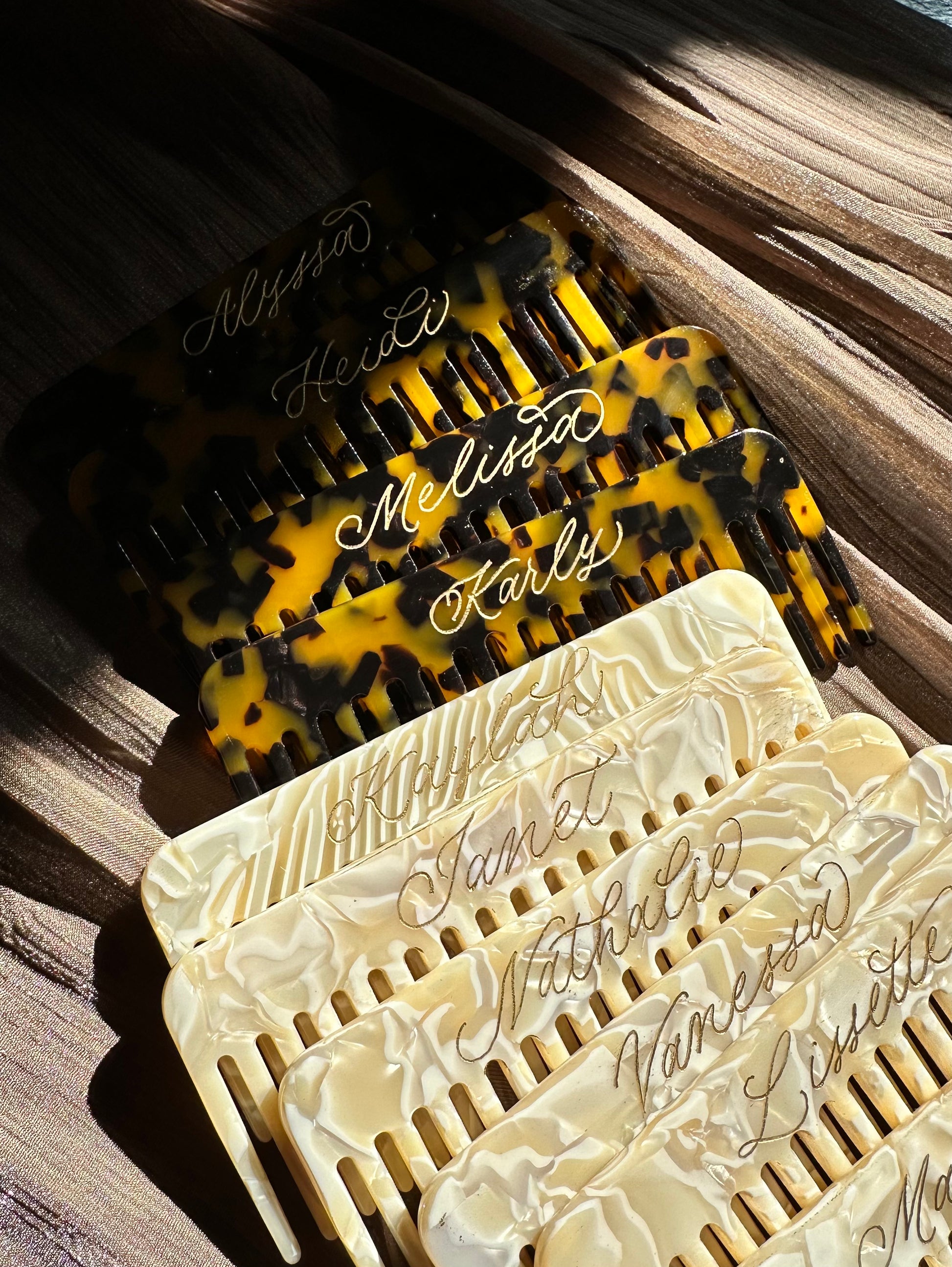 Hand engraved tortoise shell comb, perfect for a personalized gift